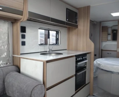 The Bessacarr has Air Conditioning – stay cool in summer,AL-KO Secure Wheel Locks – top-tier security, Reversing Camera – easy manoeuvring and added safety, Luxury fixed bed, Fully equipped kitchen with modern appliances, Smart modern interior with high-quality furnishings, Alde central heating for year-round comfort. WI-FI, Plus many more features.