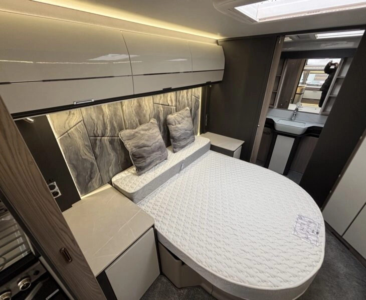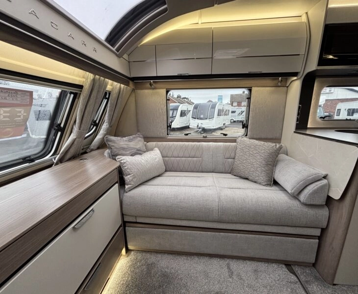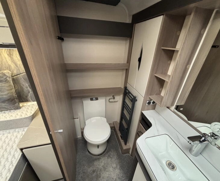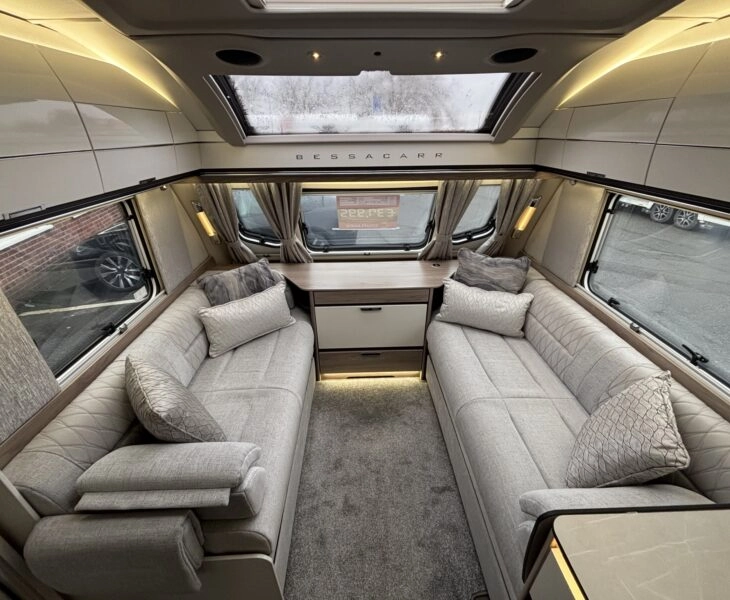 This Stunning 2023 Bessacarr By Design 845 is a luxury four-berth twin-axle caravan with fixed island bed and end washroom. Offering exceptional space, comfort and specification. Built on a strong AL-KO chassis with Swift’s SMART construction, this model is designed for stability, durability and year-round touring. The wide-body layout provides a bright and spacious interior, making it ideal for extended stays or touring in comfort.