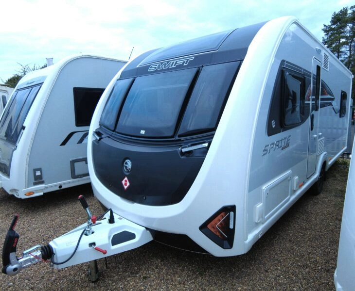 Couplands Caravans Excellent 2025 Swift Sprite Exclusive Major 4 EB 4 Berth Caravan, EXCLUSIVE FEATURES : 4′ CONTROL PANEL, WIRELESS PHONE CHARGING PAD, ATC, 120W SOLAR, EXT. BBQ POINT AND 230V POINT, ALARM PLUS MANY MORE.