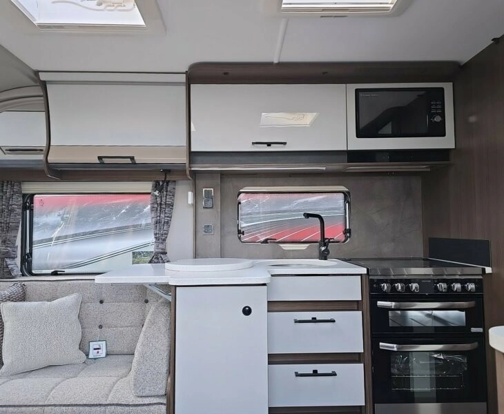 Built to Coachman’s renowned standards, the 865 Xtra includes ATC trailer control, AL-KO chassis, alarm, alloy wheels, and stylish exterior detailing. Practical extras include an external BBQ point, 230V socket and plenty of storage throughout.