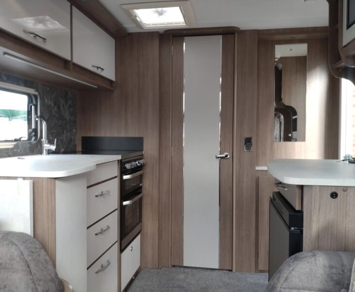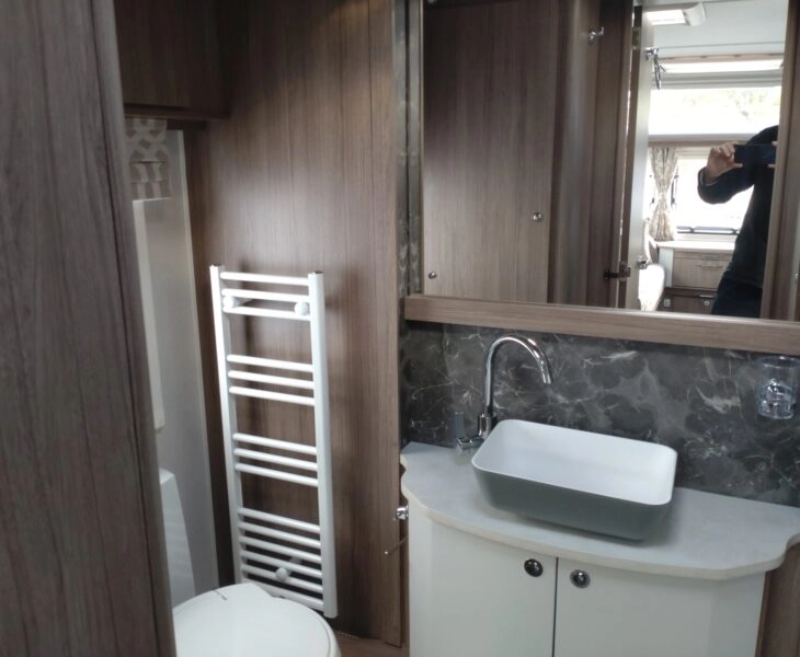 - New Layout VIP 545 (Single axle, End island bed, central washroom)