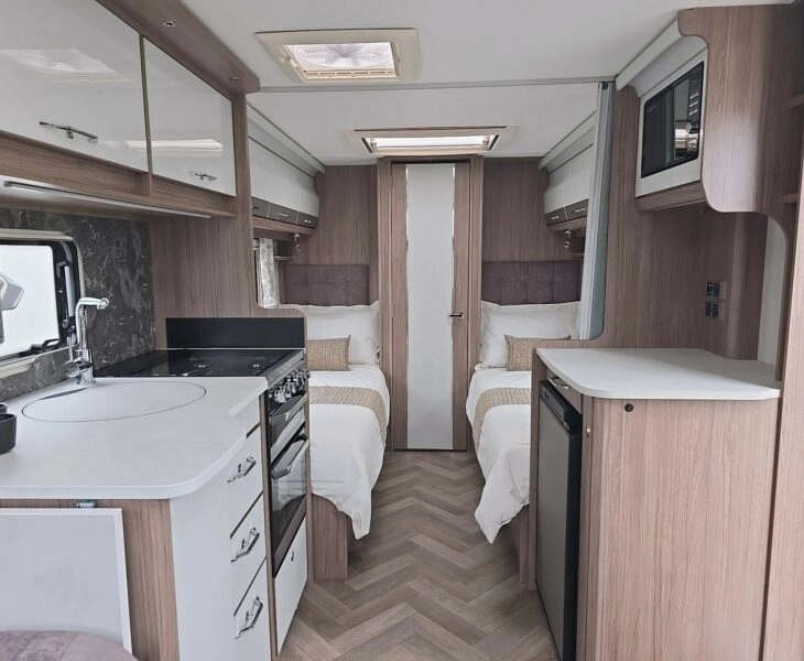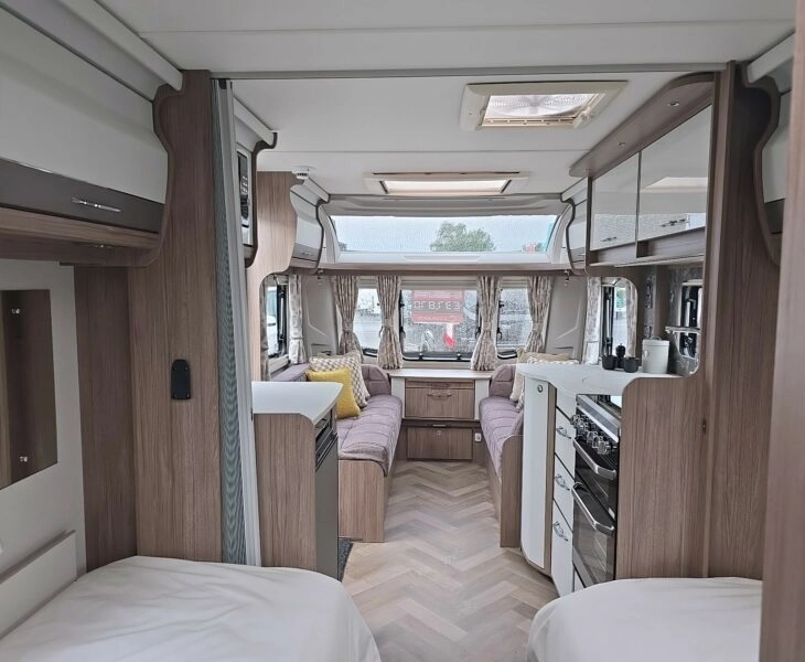 A stylish, high-spec caravan ideal for couples or those seeking a comfortable, easy-to-use fixed-bed layout.