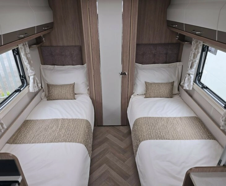 The Coachman VIP 565 offers premium comfort with a popular layout featuring twin fixed single beds and a spacious end washroom. Built to Coachman’s renowned standards, the 2026 model includes upgraded soft furnishings, modern interior styling and high-quality fixtures throughout.