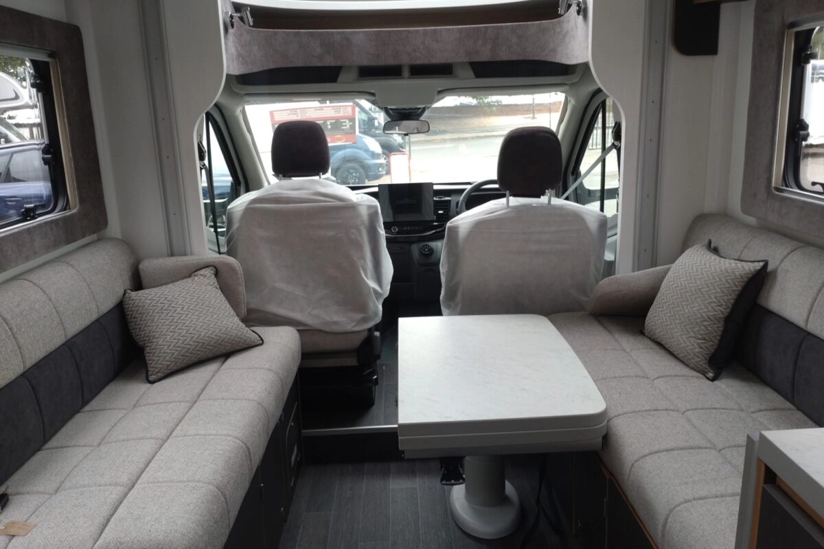 Fully adjustable upholstered driver and passenger Captain’s seats with twin upholstered armrests and integrated headrests.